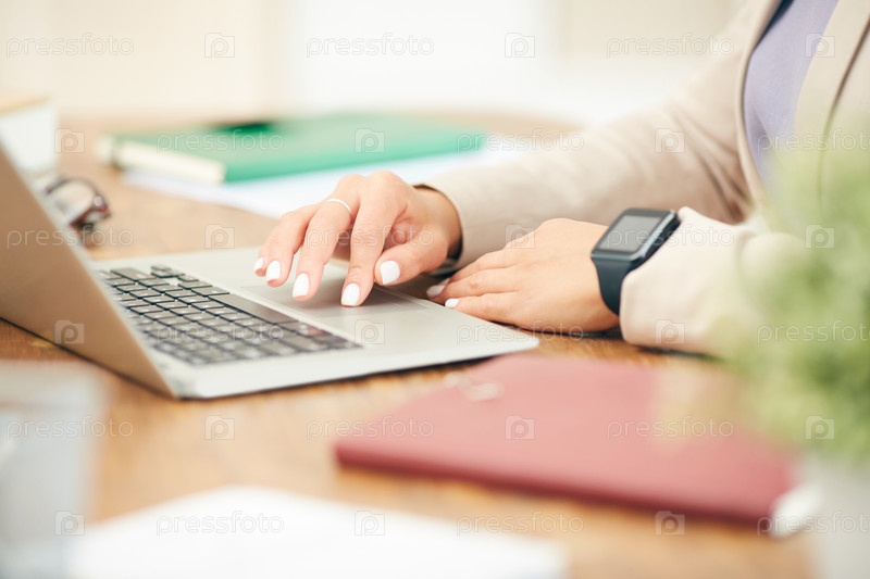 Деловая женщина, использующая ноутбук Closeup