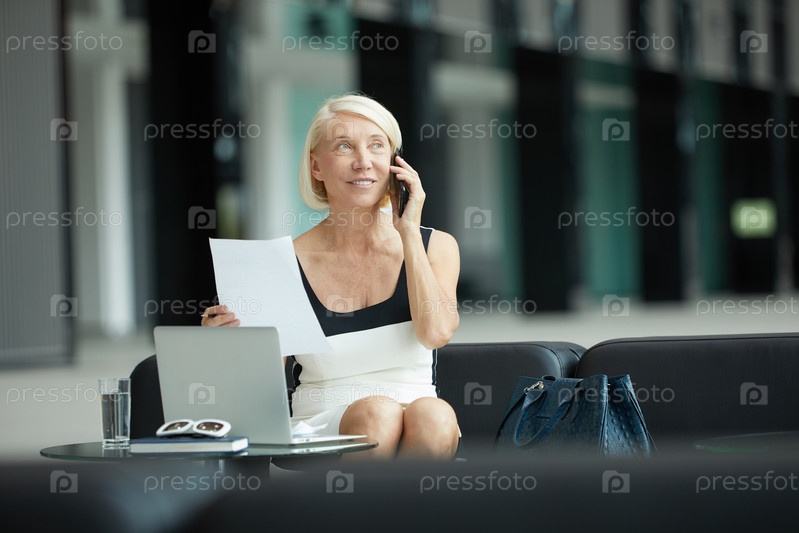 Деловая женщина, использующая мобильный телефон на работе