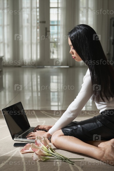 Красивая женщина, работающая на ноутбуке