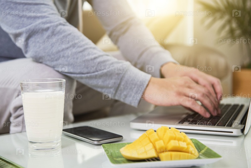 Человек, печатающий на ноутбуке
