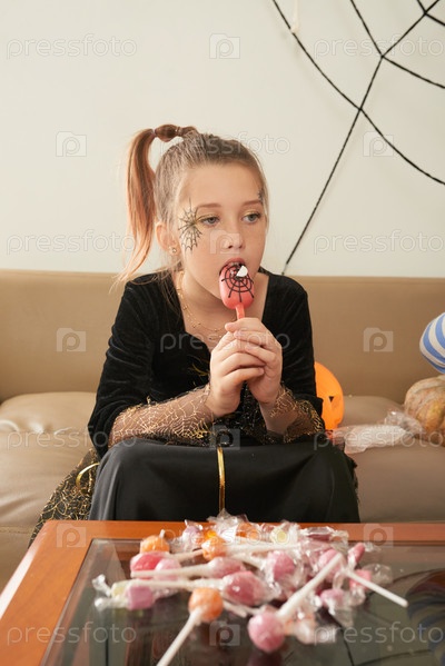 Девушка ест леденец