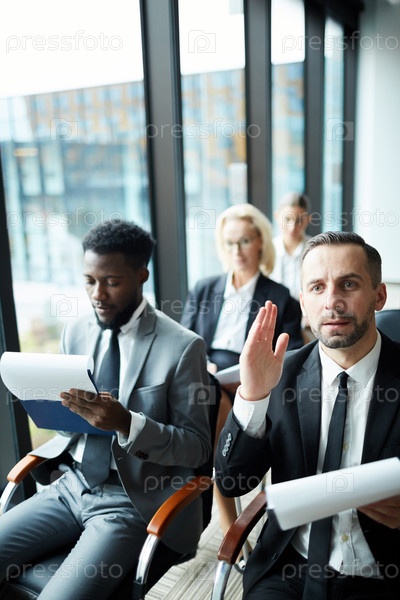 Поднимает руку, чтобы ответить