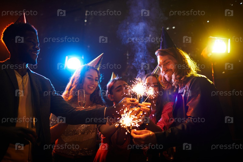 Молодые друзья зажигают искры на вечеринке