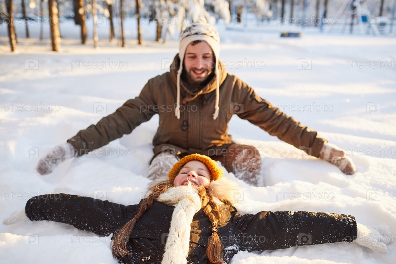 Семья играет в снегу