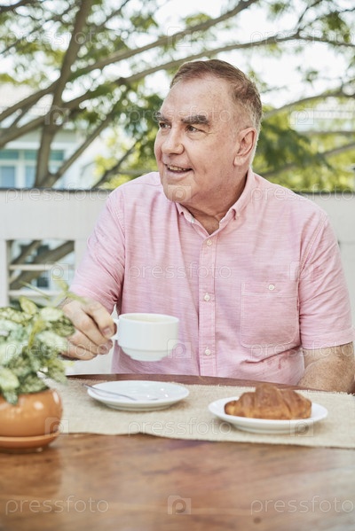 Старик пьет капучино