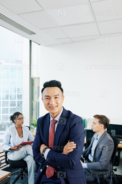 Счастливый бизнесмен в современном офисе