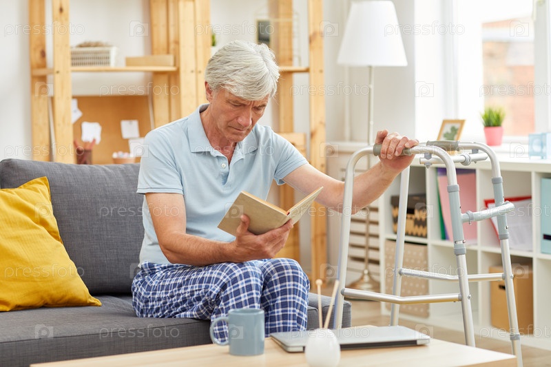 Пожилой пациент читает книгу