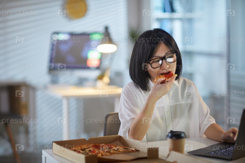 Женщина обедает в офисе