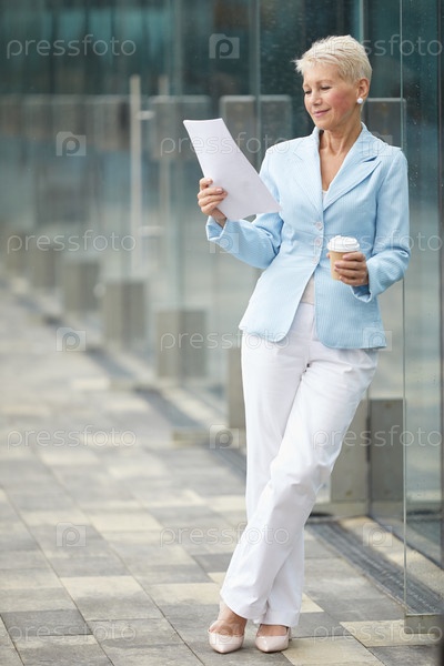 Женщина читает доклад перед встречей