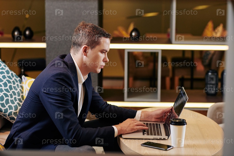 Бизнесмен, работающий на ноутбуке