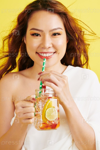 Женщина пьет холодный лимонад