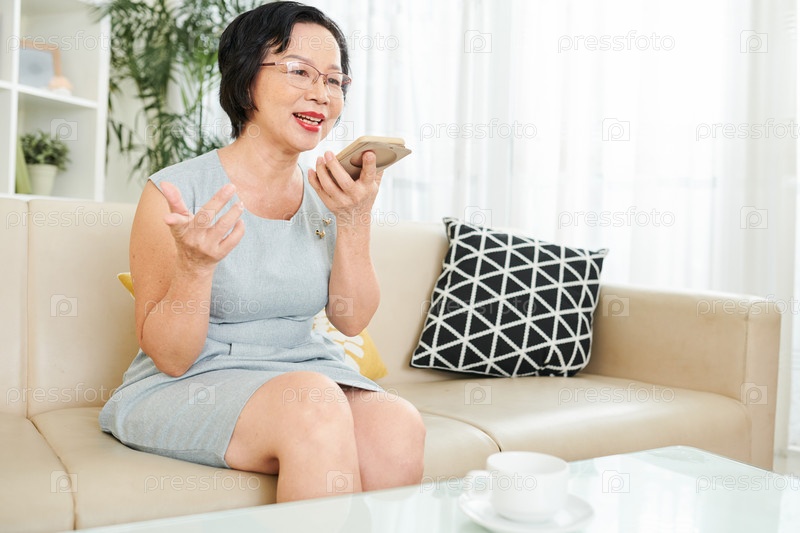 Зрелая азиатская женщина разговаривает по телефону