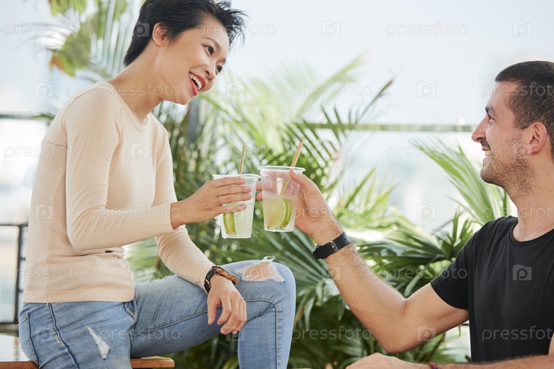 Пара тостирует с лимонадом