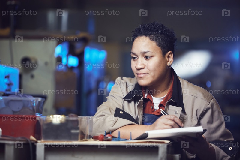 Улыбающаяся женщина контролирует производство