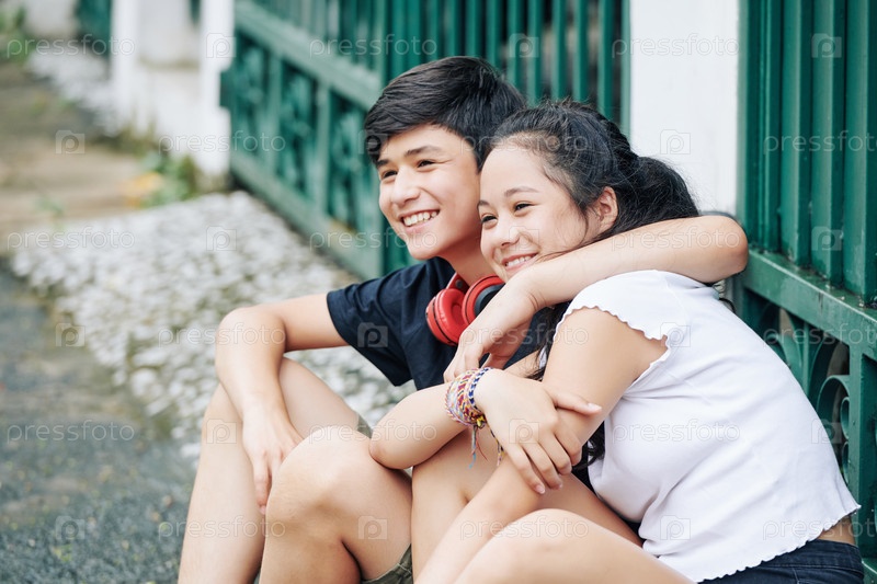 Подростки сидят на улице