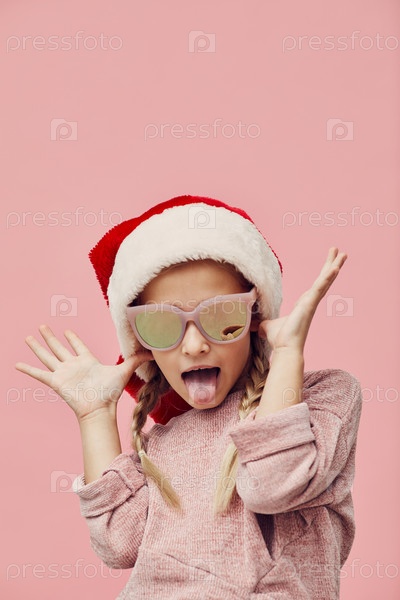 Забавная девушка в шляпе Санты