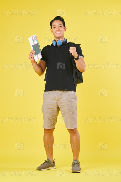 Молодой человек с билетом на самолет