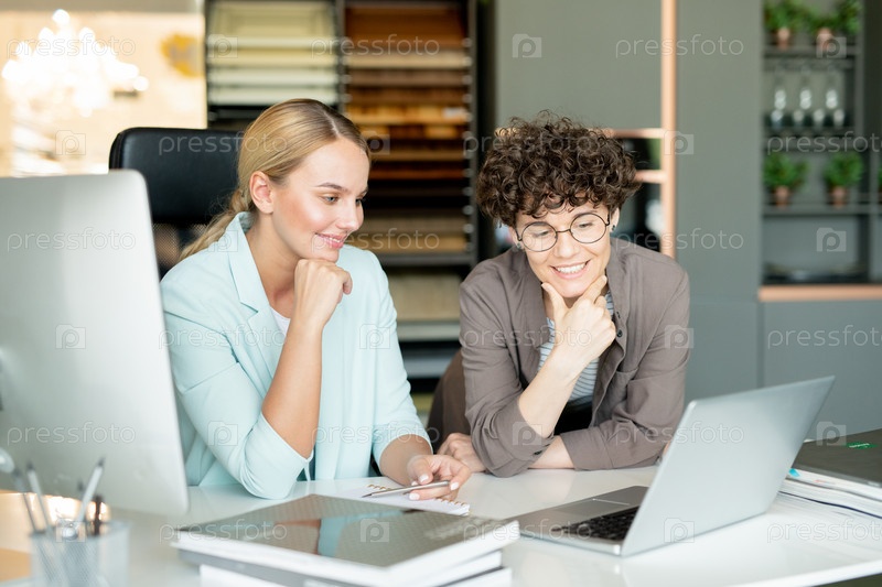 Две деловые женщины смотрят онлайн-курс для дизайнеров