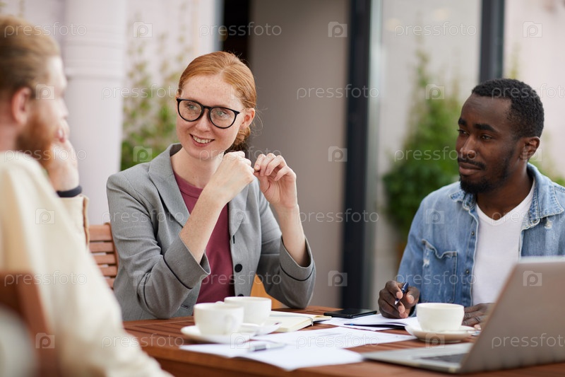 Бизнес-команда сидит в кафе