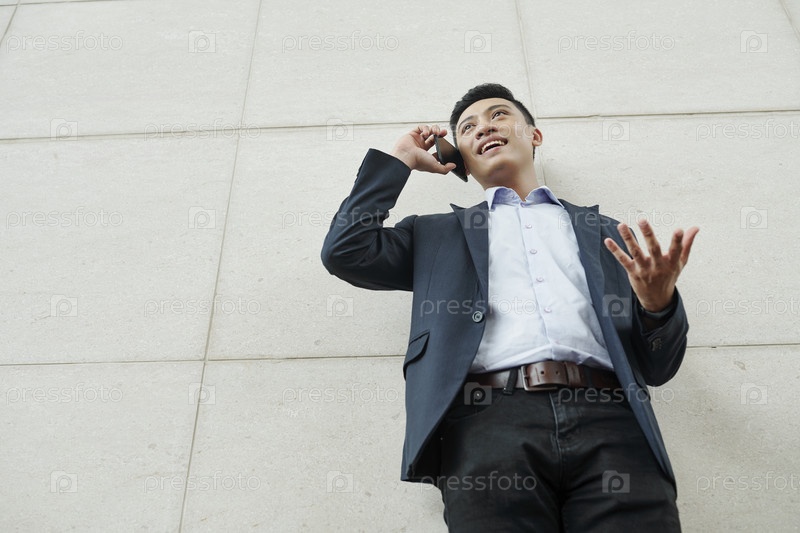 Эмоциональный бизнесмен разговаривает по телефону