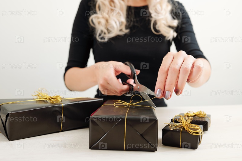 Женщина, упаковывающая подарки на Хэллоуин