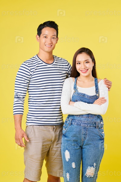 Обнимающая молодую азиатскую пару