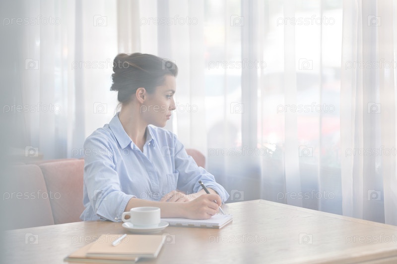 Вдумчивая предпринимательница, работающая в кафе