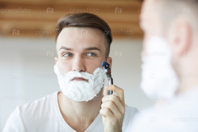 Молодой человек брится утром