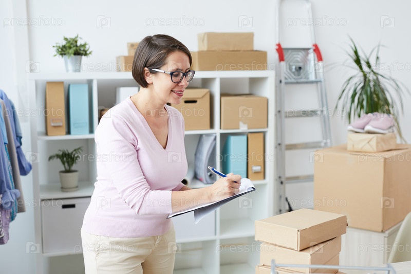 Молодой менеджер интернет-магазина одежды, записывающий список товаров