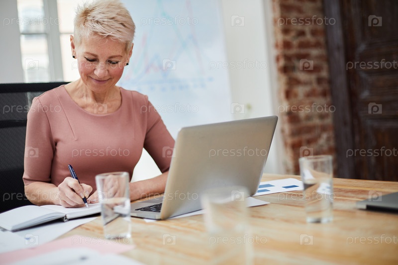 Зрелая деловая женщина, наслаждающаяся работой