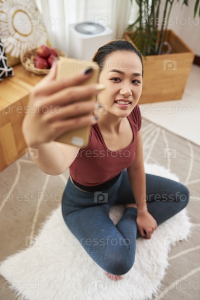 Молодая азиатская женщина делает селфи