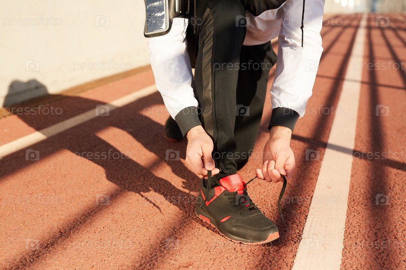 Мужчина связывает шнурки для кроссовок