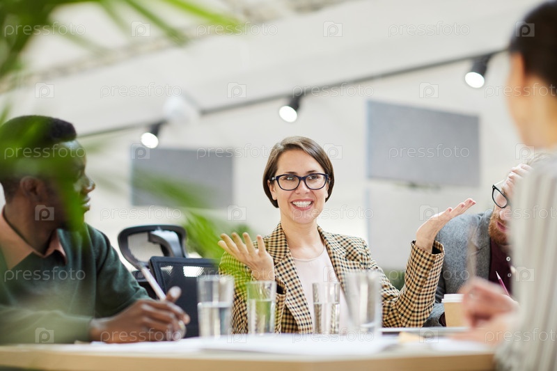 Веселая деловая женщина на встрече