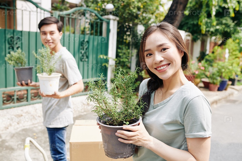 Женщина позирует с горшковым цветом