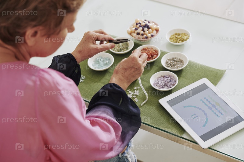 Женщина в возрасте Beading aged woman