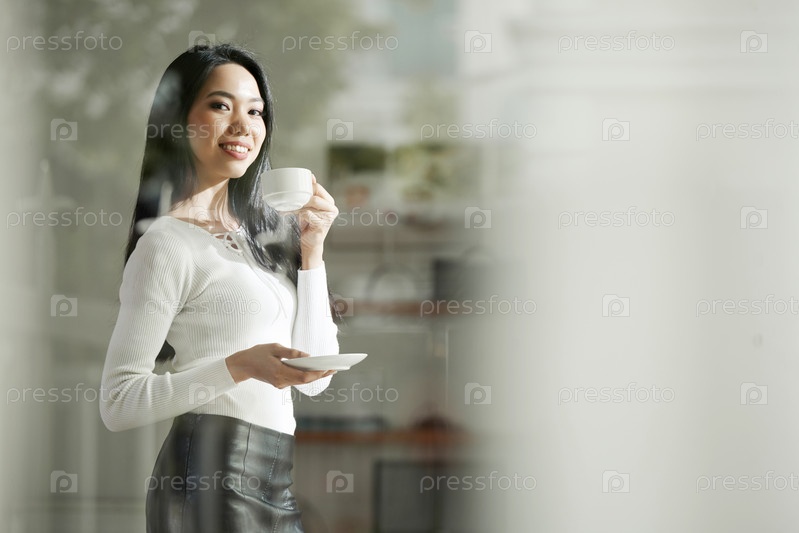Портрет красивой женщины с чашкой кофе