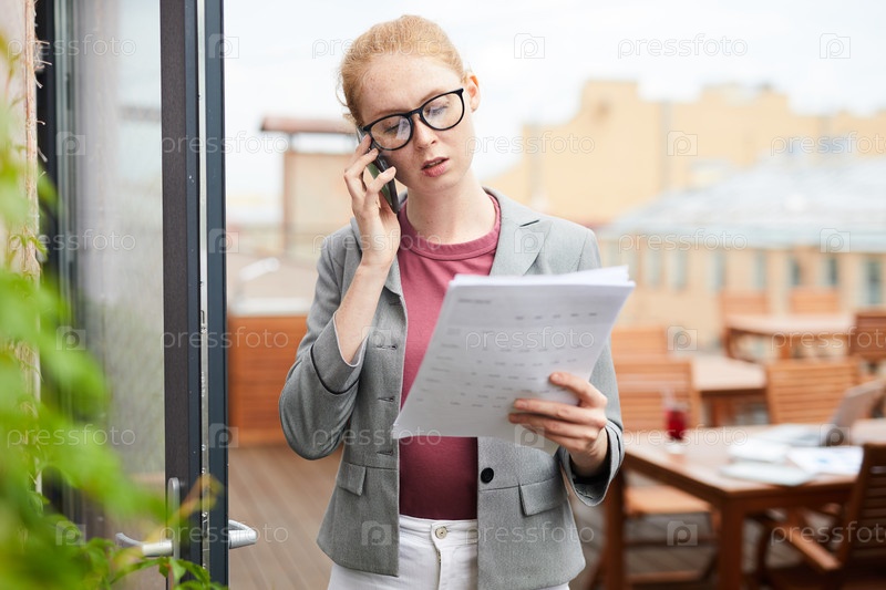 Деловая женщина, разговаривающая по мобильному телефону