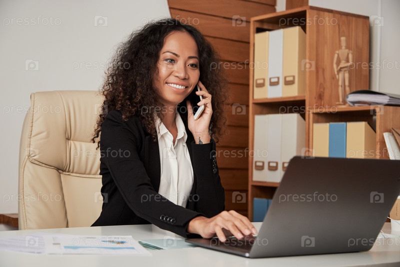 Веселая бизнес-леди звонит клиенту