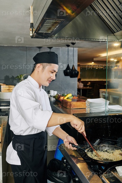 Азиатский шеф-повар готовит рис