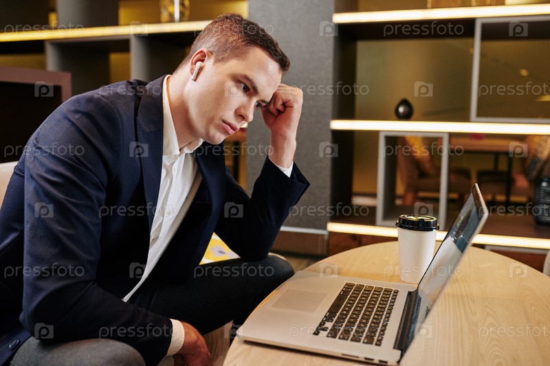 Пенсивный бизнесмен читает электронную почту