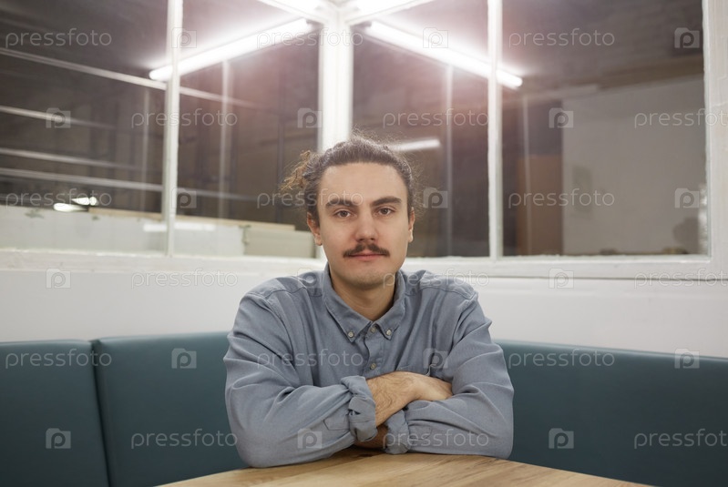 Молодой человек сидит в офисе