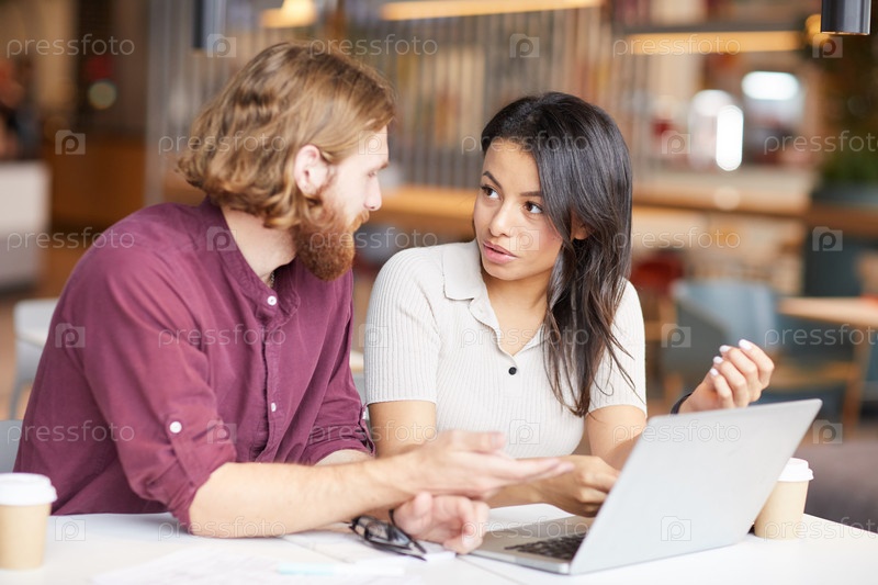 Коллеги по бизнесу, использующие ноутбук на работе