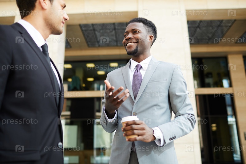 Бизнесмены разговаривают на открытом воздухе