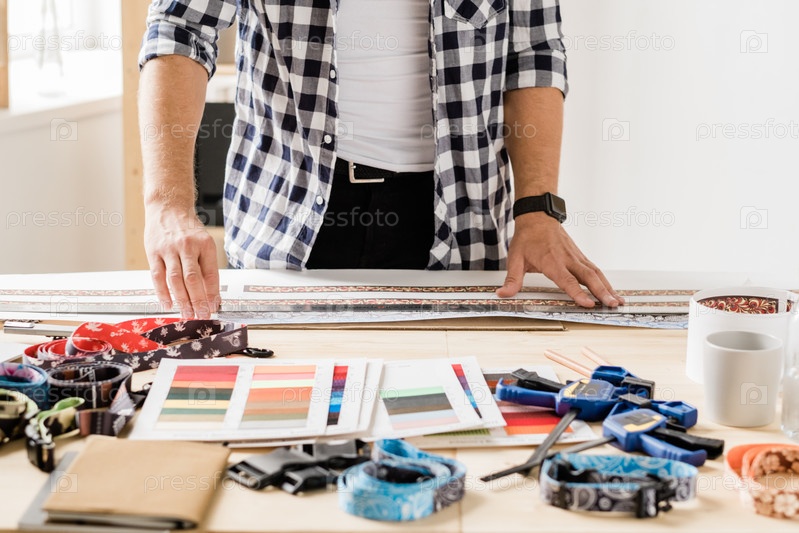 Молодой ремесленник с линейкой, стоящий за столом во время работы с деталями