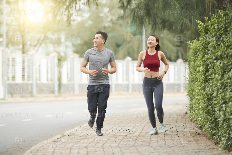 Пара бегает по улице