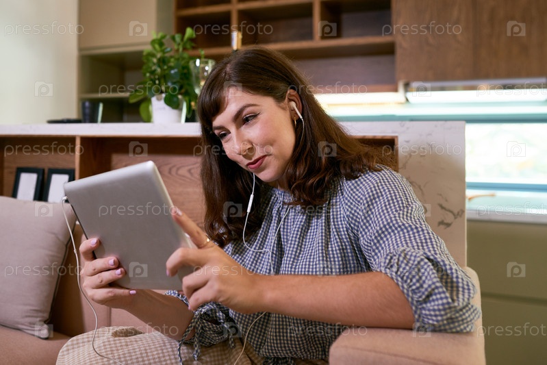 Женщина смотрит фильм на планшетном компьютере