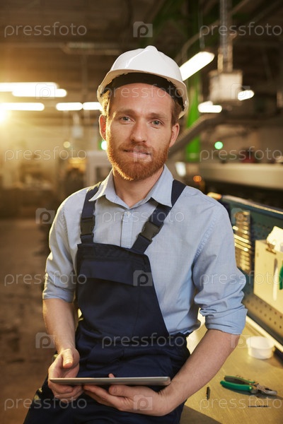 Инженер с планшетным компьютером на заводе