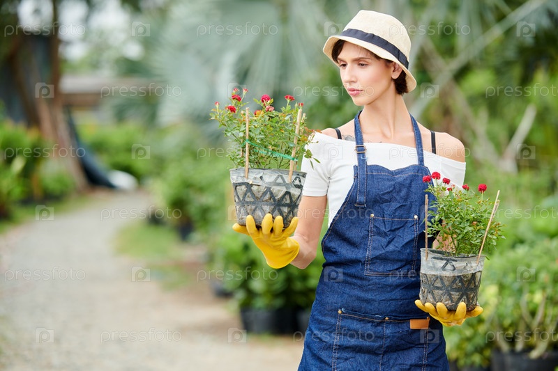Садовник смотрит на цветочный горшок