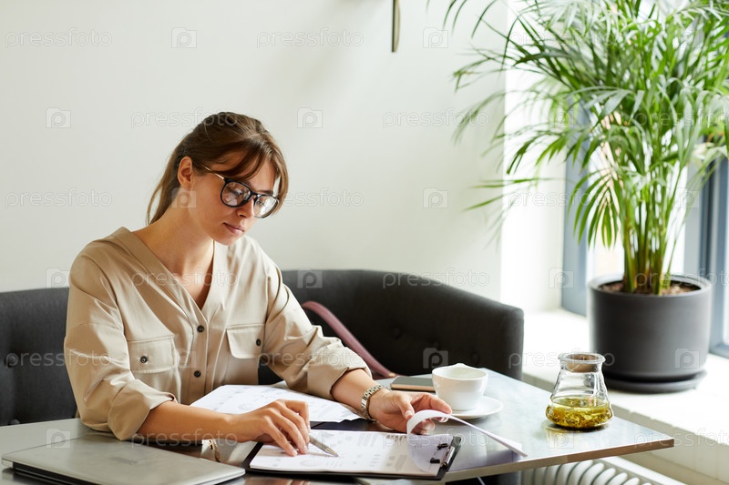Деловая женщина, работающая с отчетом