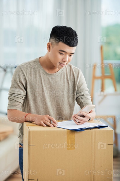 Мужчина заполняет форму для доставки